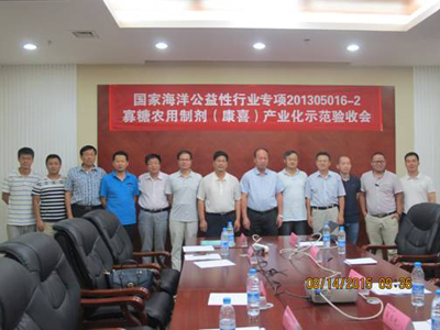 2015年8月13-15日,由中国科学院大连化学物理研究所1805课题组承担的海洋公 益性行业科研专项“几种海洋医用和农用生物新材料及制品产业化关键技术研究与示范(201305016)”子项目中的 “新型寡糖农用生物制剂产业化关键 技术研究与示范(编号:201305016-2)”阶段现场验收会在陕西省洛川县举行。